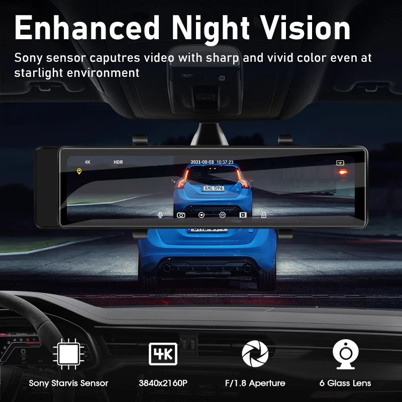 亚马逊日本爆款右舵日语12寸流媒体行车记录仪 高清4k前后双录GPS