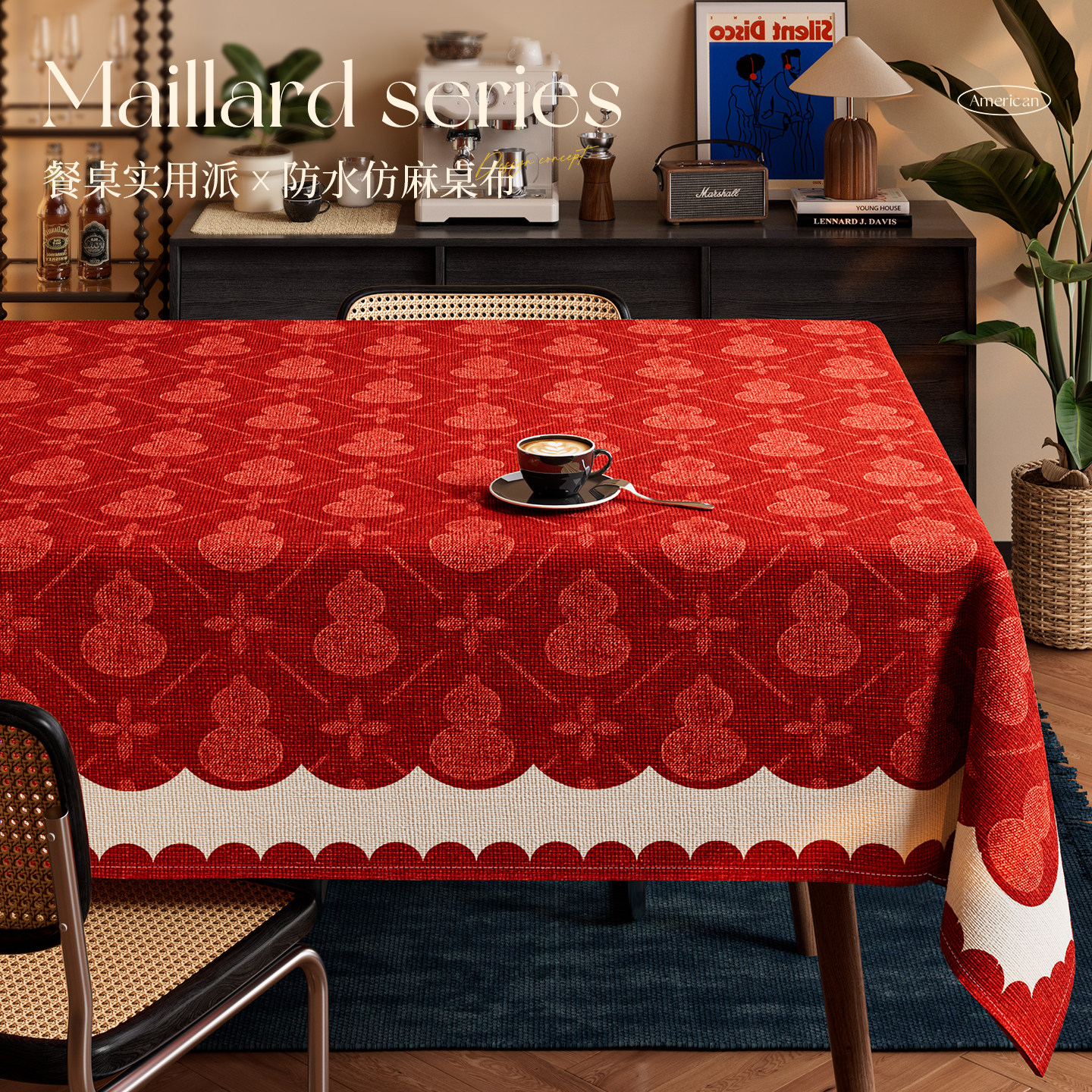 免洗防水桌布2026新款高级感长方形圆形餐桌布红色喜庆桌面保护垫