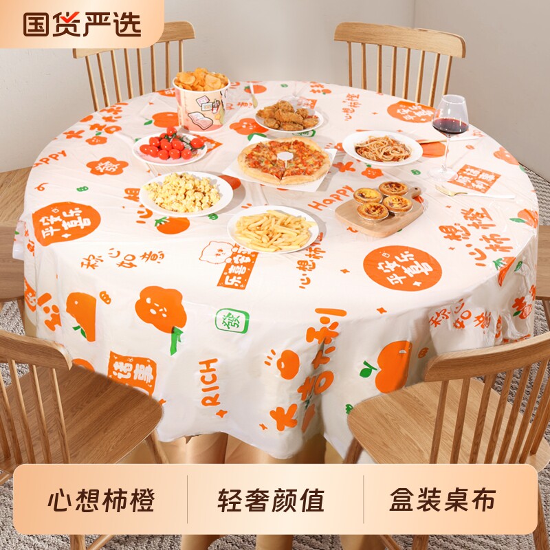 一次性桌布加厚款圆形桌防水防油家用过年特厚长方形台布印花轻奢