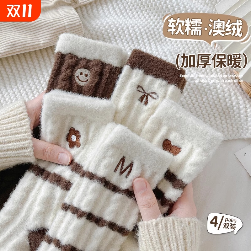可爱袜子女秋冬季澳绒加厚保暖毛绒中筒袜冬天卡通居家月子睡眠袜