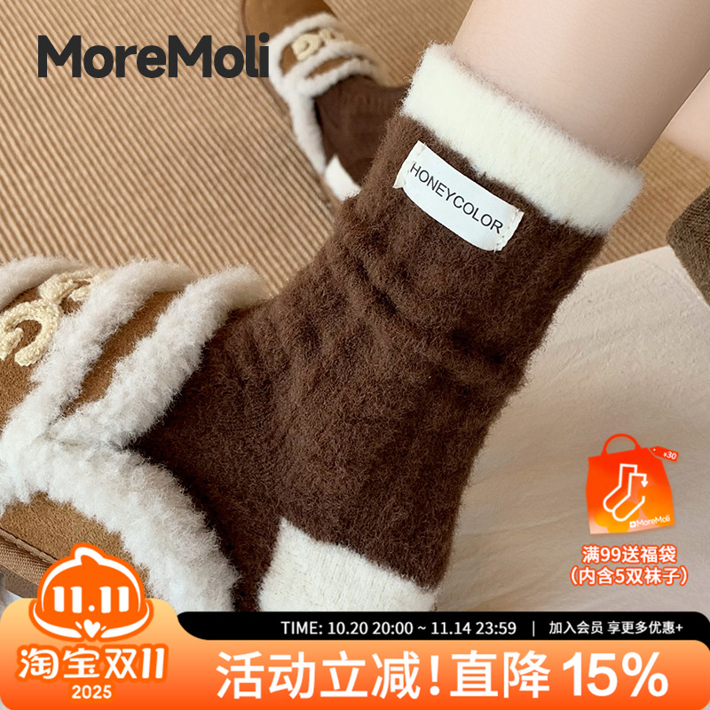 可爱毛绒袜子女冬季加绒加厚保暖毛毛袜家居中筒袜澳绒地板睡眠袜