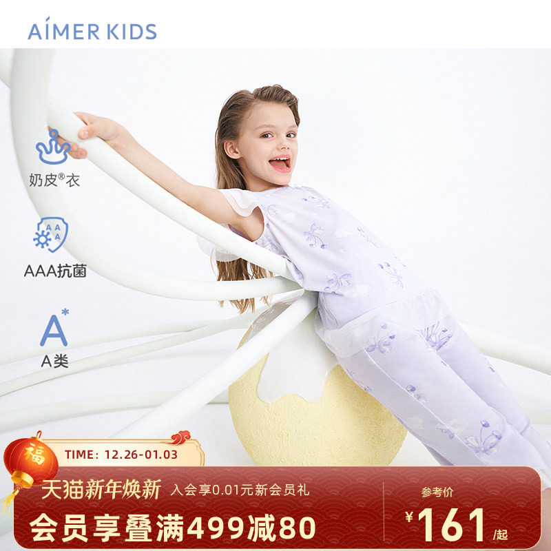 小青龙夏季儿童睡衣薄款女童纯棉透气短袖睡裙T恤女孩裙子家居服