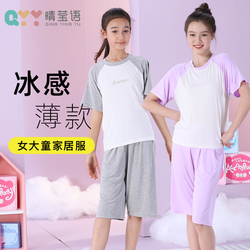 女童睡衣薄款女大童短袖短裤套装中大童空调服儿童家居服两件套夏