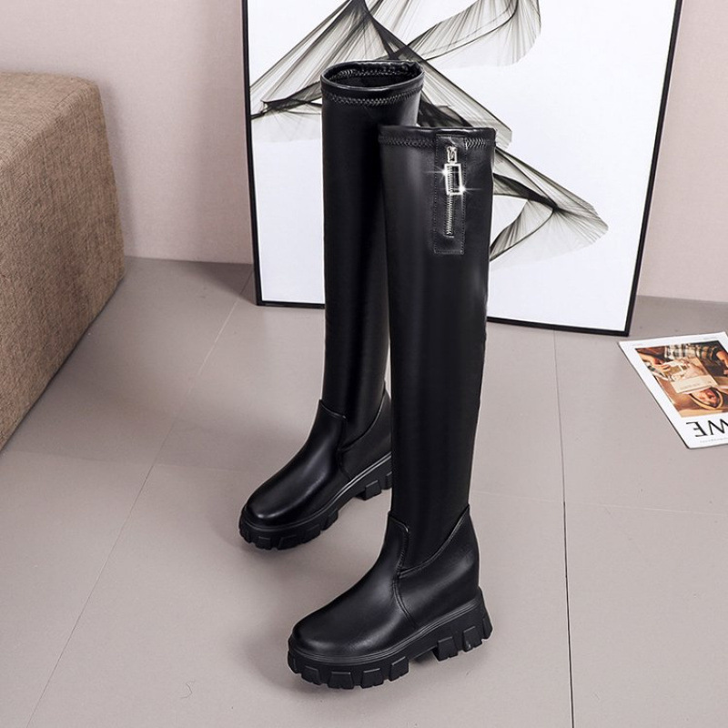 长筒靴女过膝冬季厚底内增高弹力靴小个子马靴瘦瘦靴女靴春秋单靴