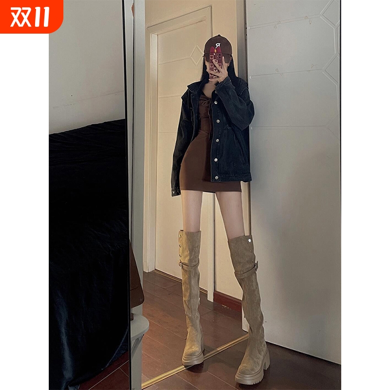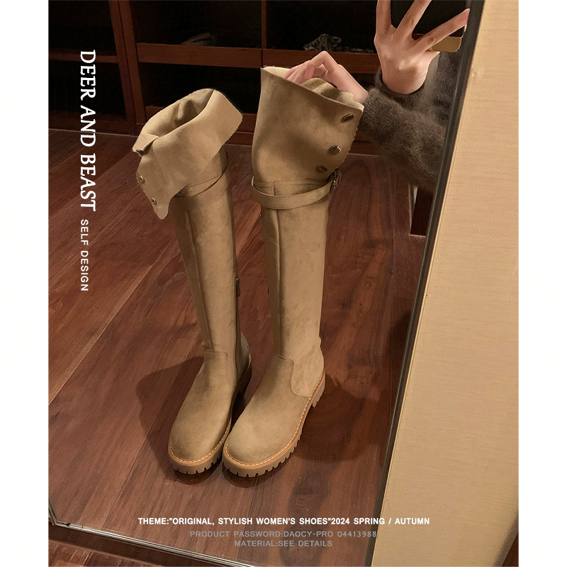 翻折绒面过膝长筒靴女秋冬2025新款厚底长靴女士美拉德靴子内增高