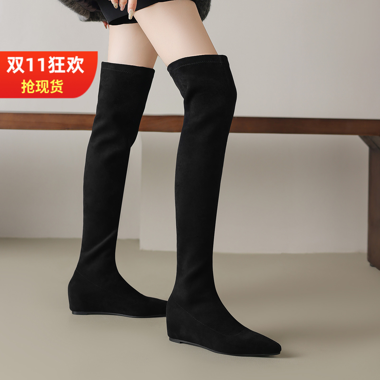 六点大叔小个子内增高两穿高筒靴长筒靴女厚底过膝显瘦绒面长靴子
