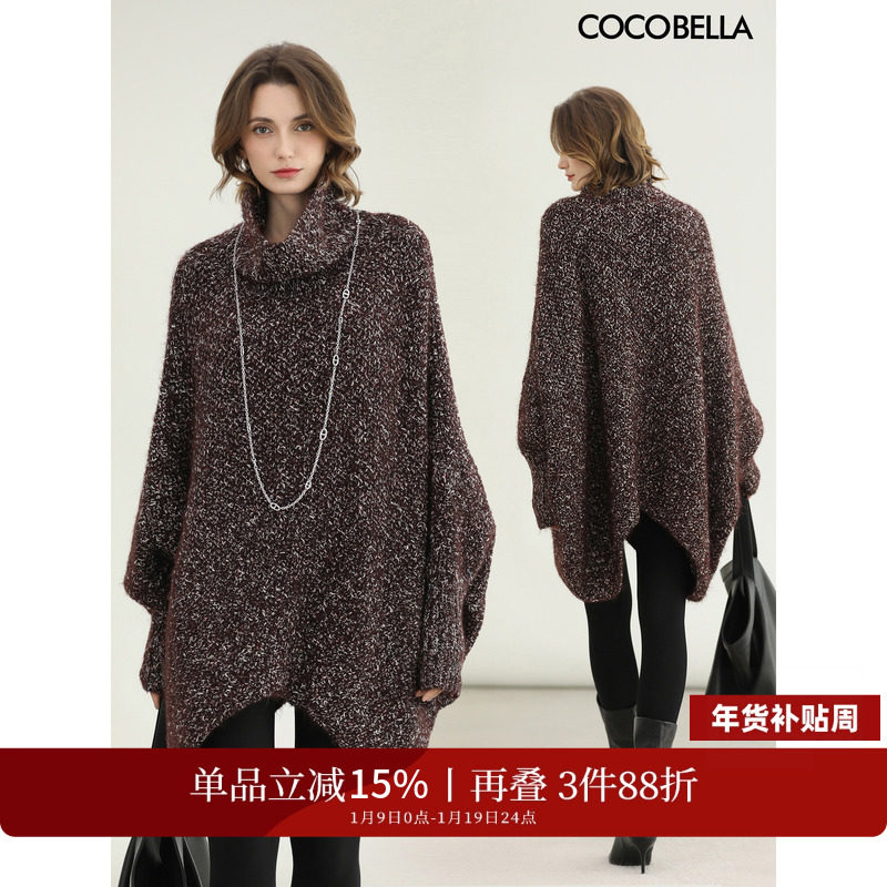COCOBELLA时尚杂色宽松毛衣裙高领中长款洋气连衣裙MZ3309-2