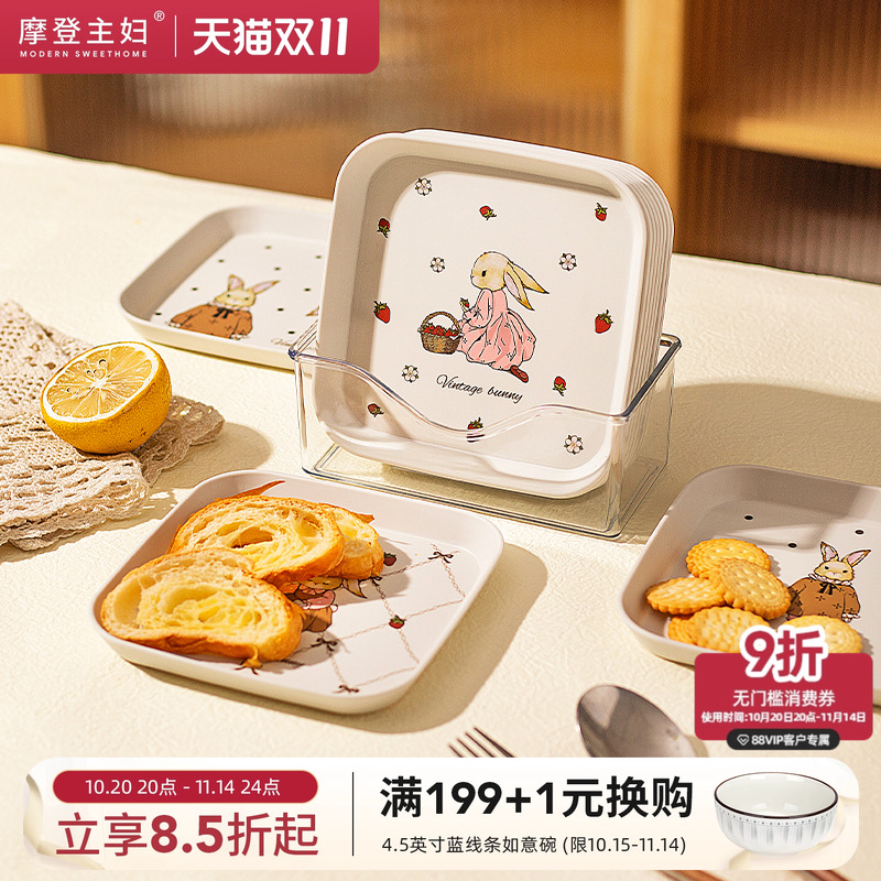 摩登主妇赫拉兔吐骨碟家用吐骨头盘碟子食品级垃圾渣盘子花盆托盘