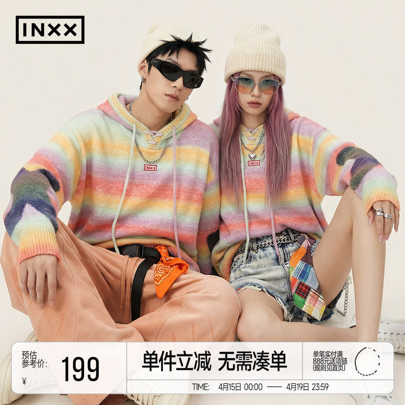明星同款 INXX多巴胺连帽针织衫男女潮牌独特套头毛衣oversize