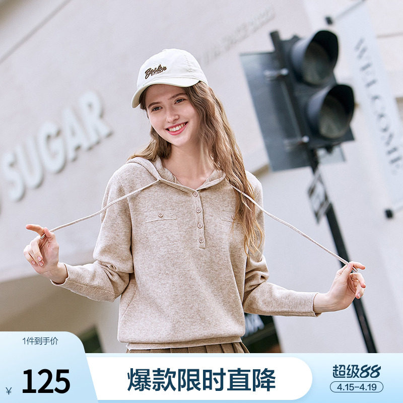 betu百图法式软糯连帽针织衫女套头2026年春季新款宽松外穿毛衣