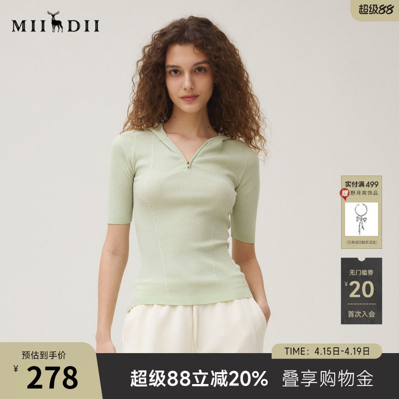 谜底连帽套头针织衫短袖女2025秋新品时髦后背设计修身253MZ1360