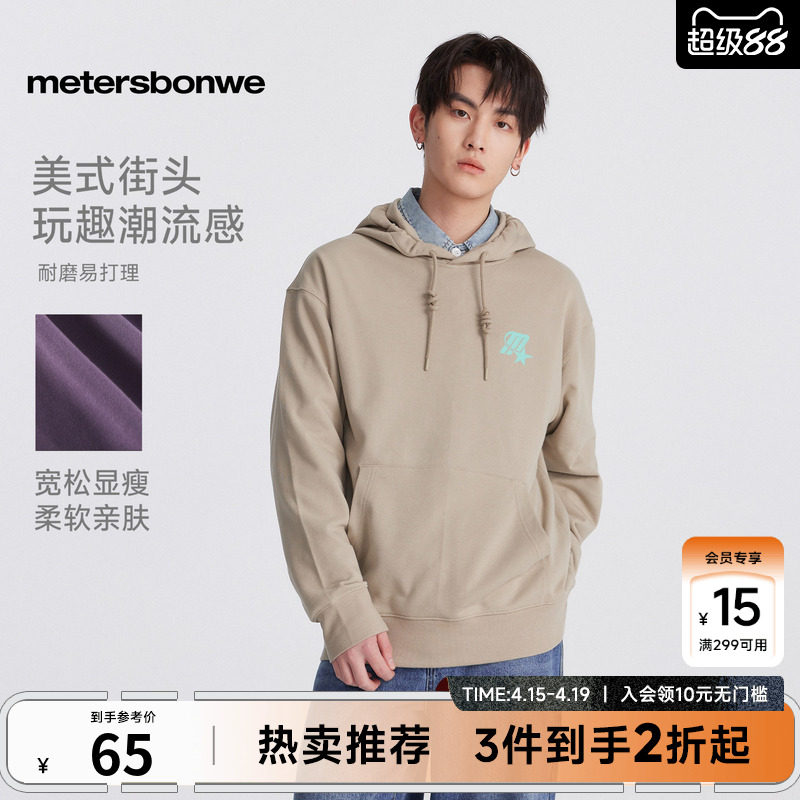 美特斯邦威男女卫衣春夏新款舒适潮流学院潮酷字母连帽针织套头衫