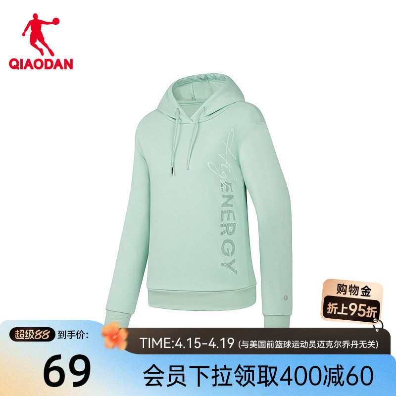 中国乔丹运动卫衣女士2026春季连帽套头潮流百搭修身针织上衣