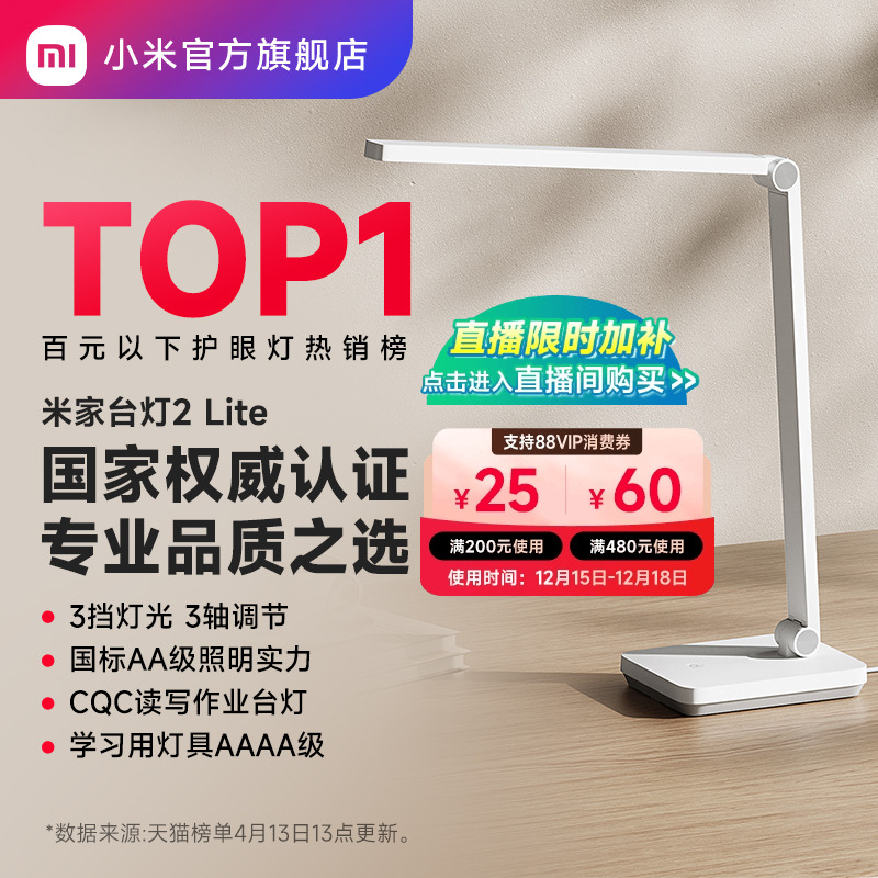 小米官旗米家台灯2lite学习专用宿舍大学生儿童桌面工作床头折叠