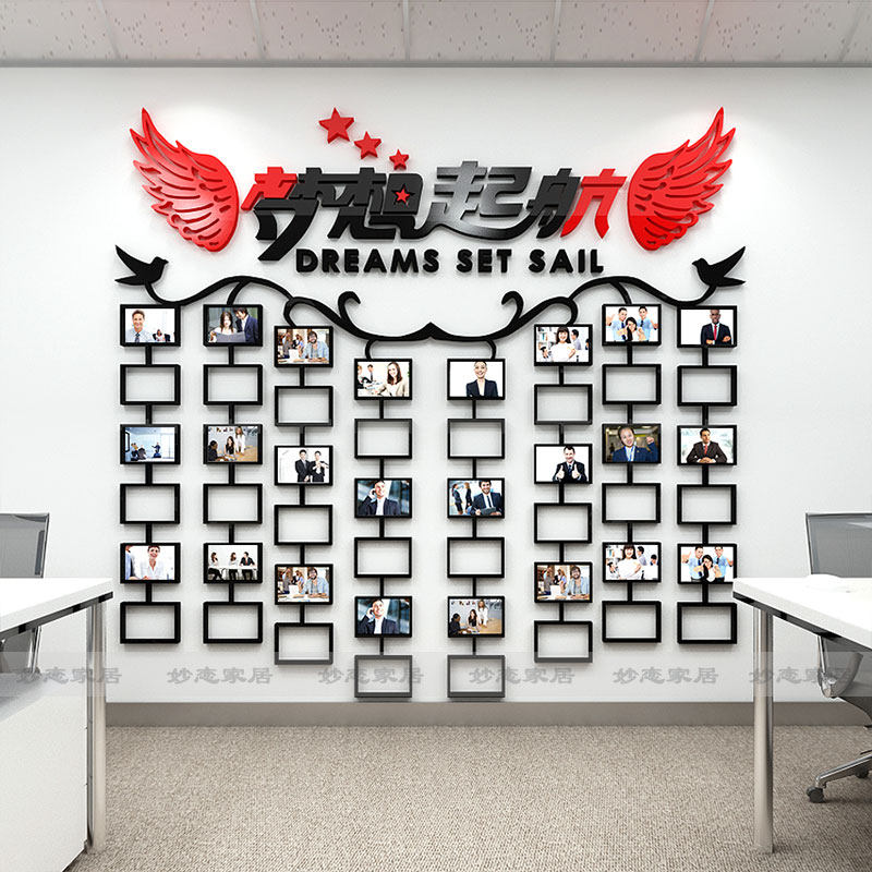 3d立体亚克力墙贴公司企业文化墙办公室励志照片墙纸员工团队风采