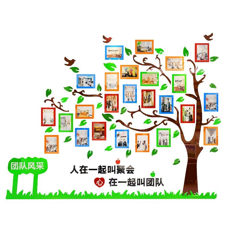 大树相框3D立体墙贴公司企业办公工室文化墙装饰员工风采照片墙纸