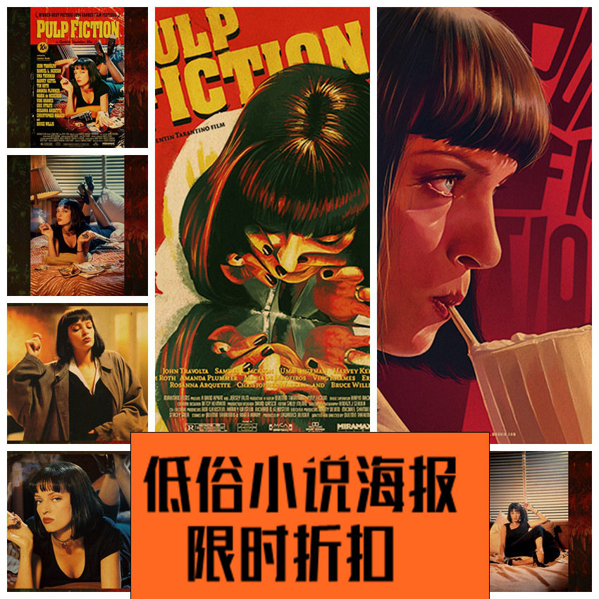 低俗小说海报Pulp Fiction复古牛皮纸欧美电影装饰画壁纸墙贴照片