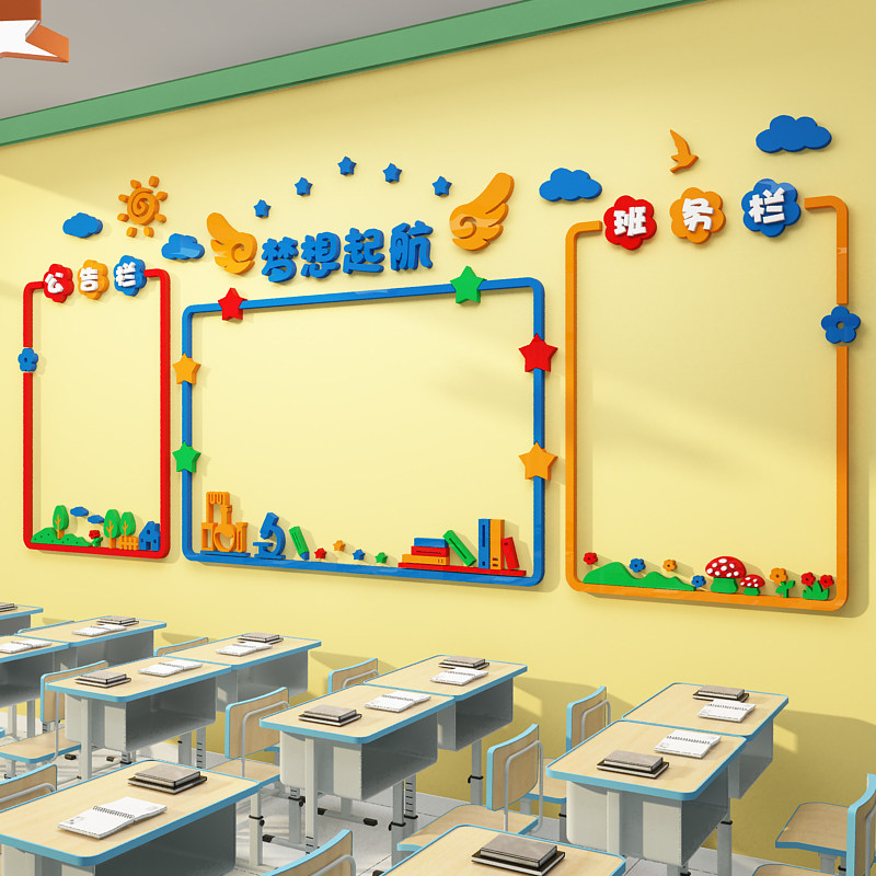 亚克力墙贴3d立体梦想从这里起航幼儿园公司展示文化形象照片墙纸
