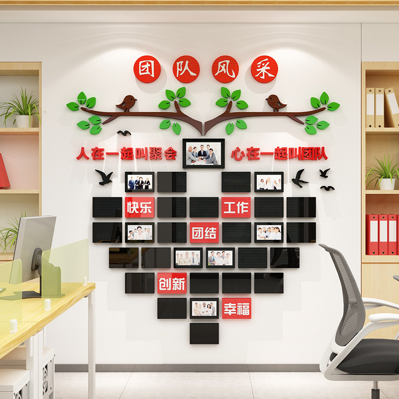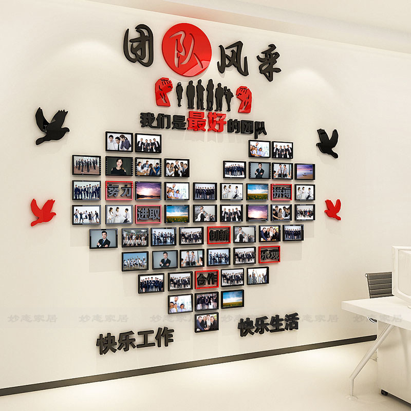 员工团队风采展示照片墙纸贴画办公室布置装饰3d立体企业文化荣誉