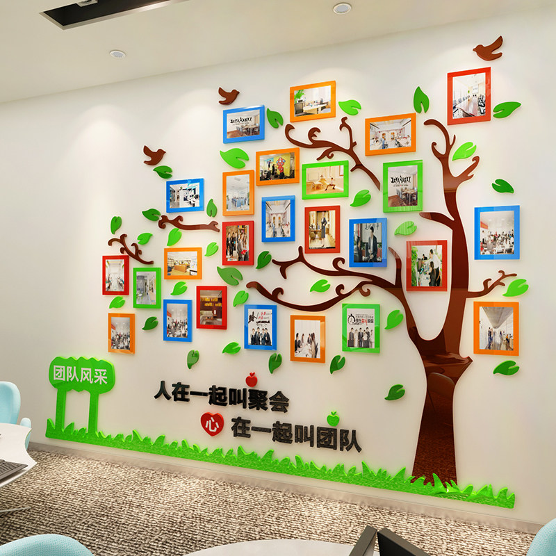 大树相框3D立体墙贴公司企业办公工室文化墙装饰员工风采照片墙纸