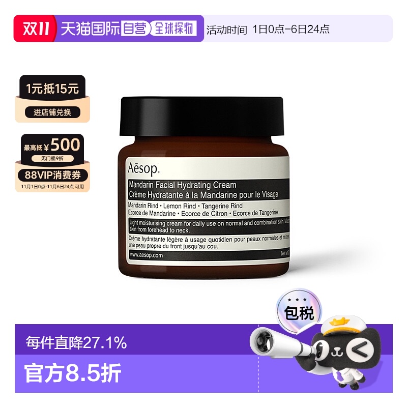 澳大利亚直邮Aesop伊索山茶核仁滋润面霜水润保湿舒缓修护12正品