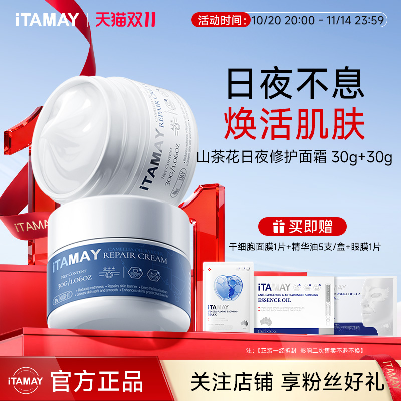 iTAMAY澳大利亚修复肌肤屏障受损修护深层补水山茶花早晚面霜套盒