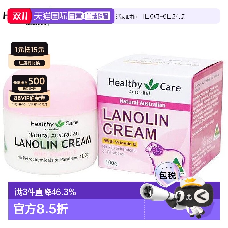 澳大利亚直邮Healthy Care澳世康含维他面霜水润保湿100g绵羊油正