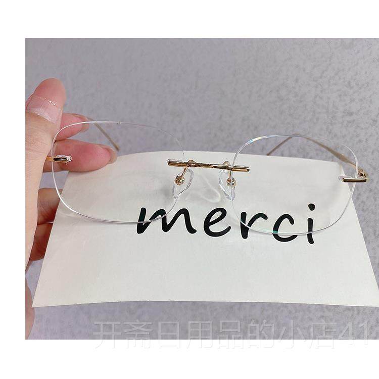 正品镜无框平视眼镜女纯钛超轻镶边近大芊框显瘦光防蓝光辐射素颜