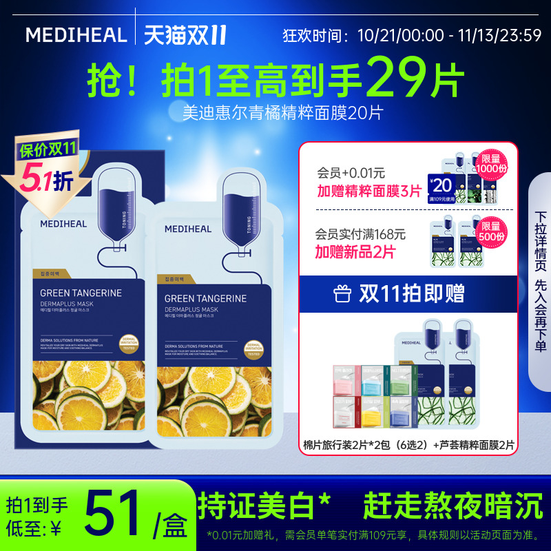 【美白焕亮】美迪惠尔官方旗舰店青橘精粹20片美白保湿面膜男女