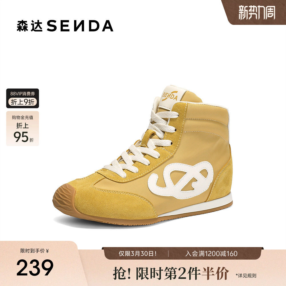森达黄色高帮运动鞋女内增高德训鞋冬新款户外休闲鞋ZTI33DD5
