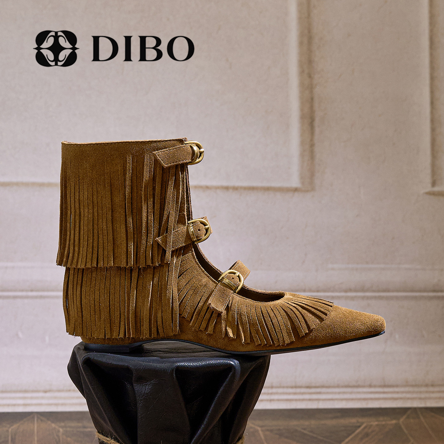 DIBO碲铂2026春季新款内增高女鞋尖头真皮高帮鞋侧拉链时尚休闲鞋