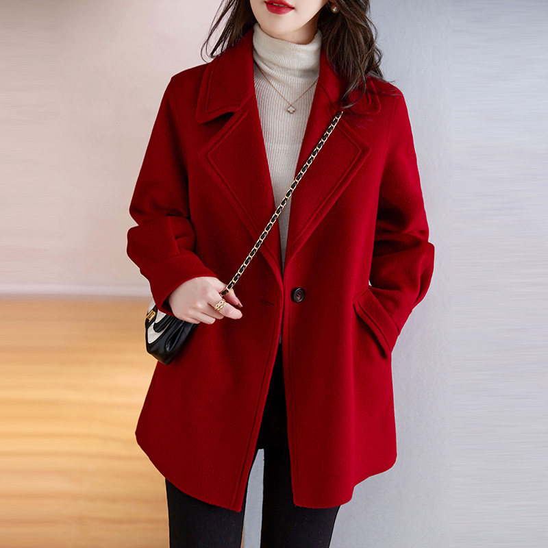 2025年秋冬新款韩版休闲红色双面呢羊毛大衣小个子显瘦毛呢外套女