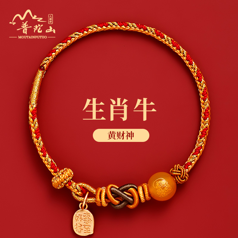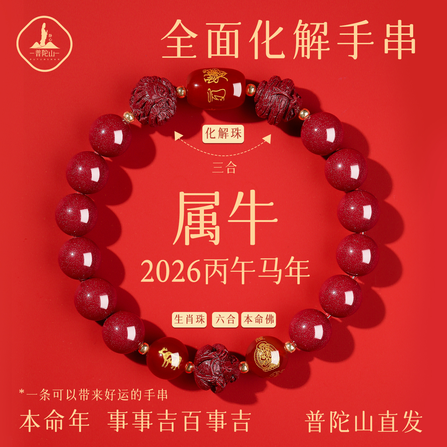 普陀山2026年属牛太岁手链女红手链朱砂手串女生肖牛男护身符礼物