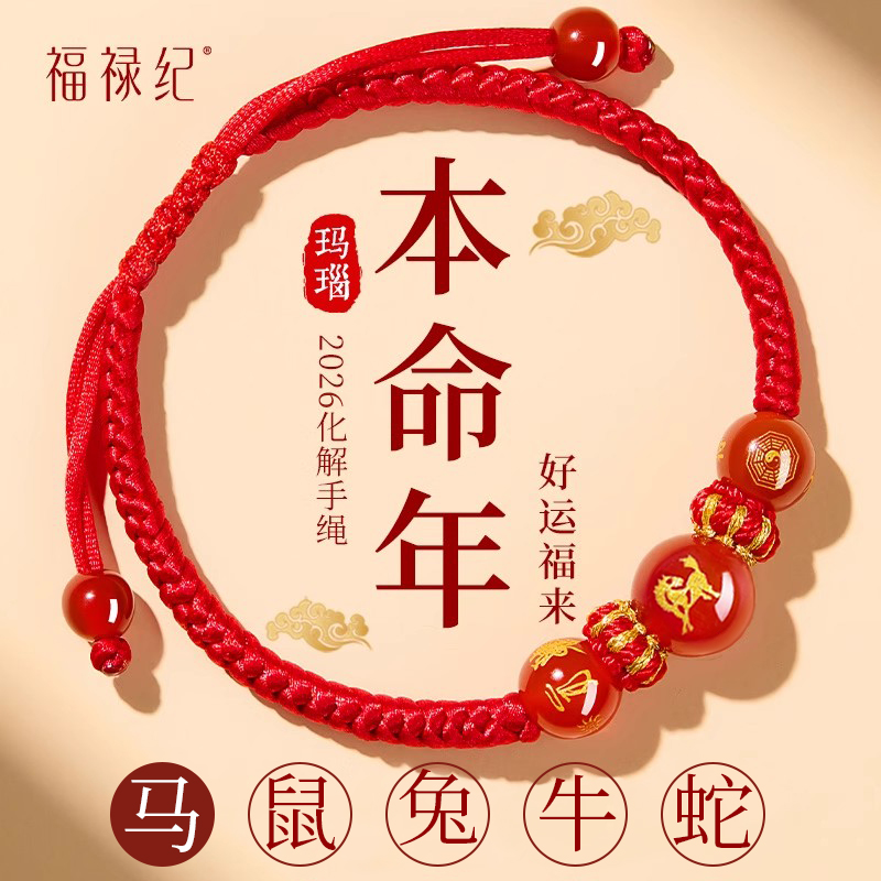 2026年太岁红绳手链本命马年属马鼠牛兔佩戴吉祥物犯太符化护身符