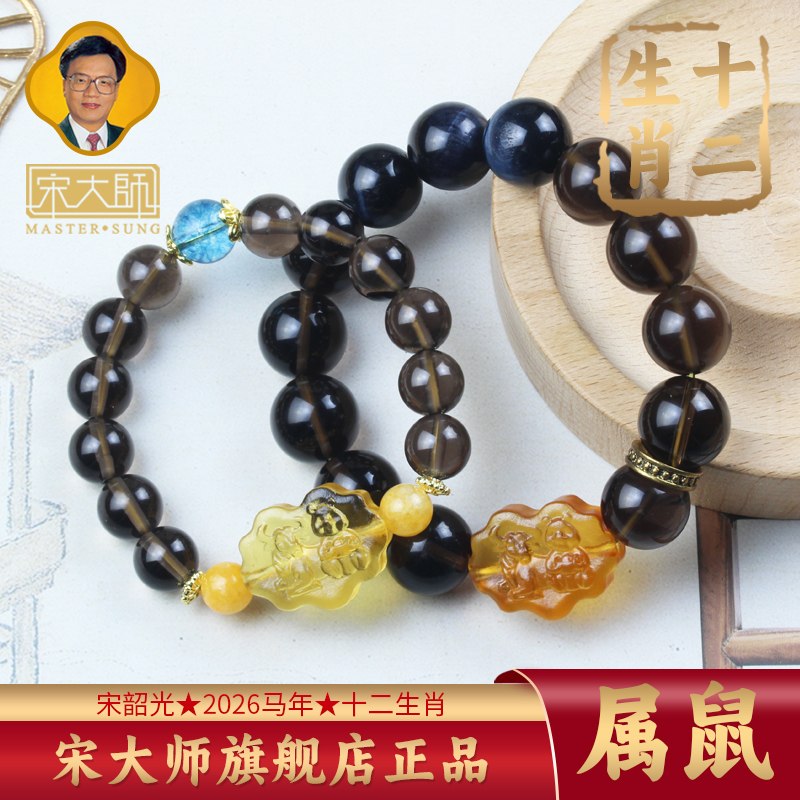 宋韶光大师2026马年吉祥物生肖属鼠 牛熊保岁 琉璃手链礼品