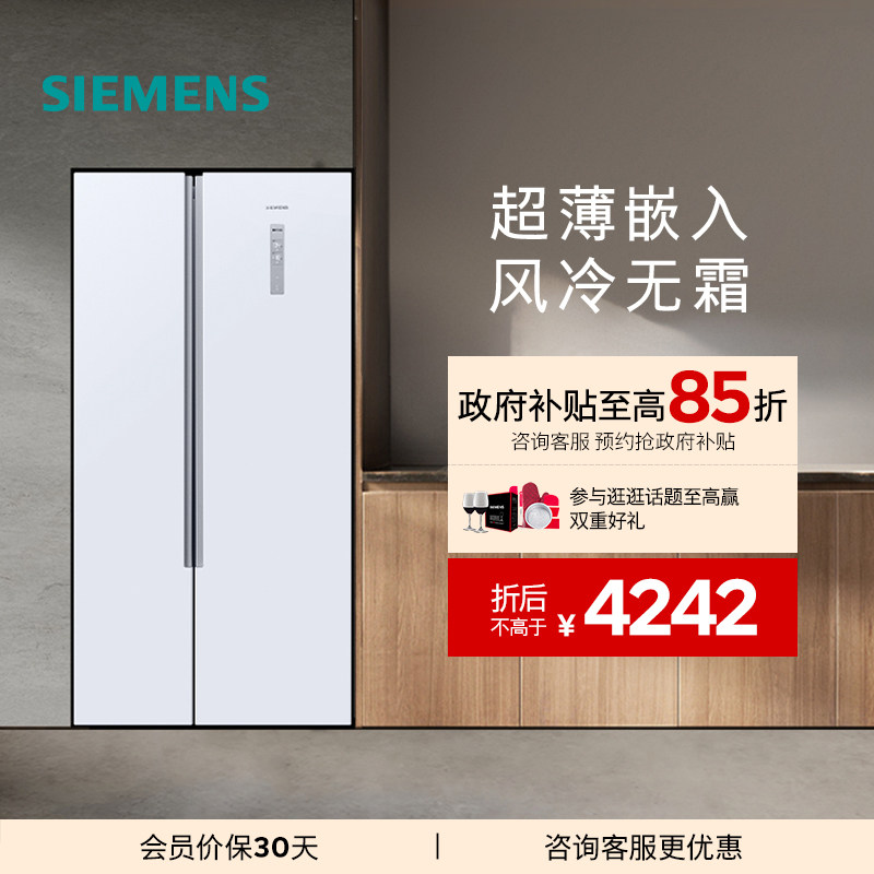 【超薄嵌入】西门子官方超薄501L对开门家用大容量风冷无霜冰箱