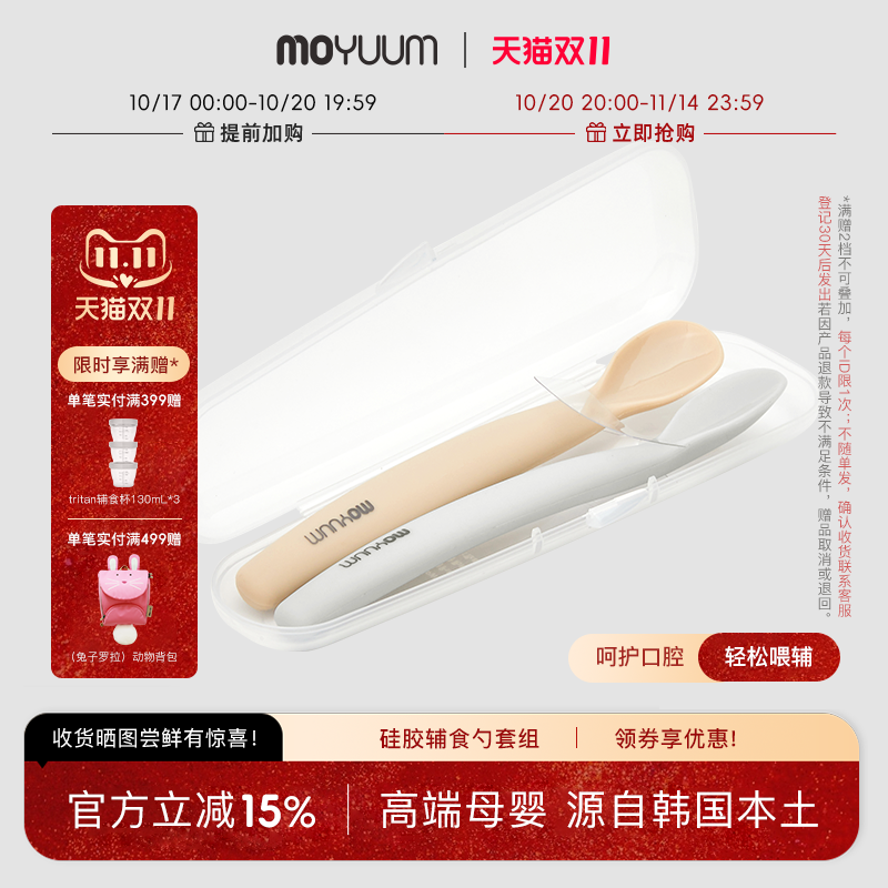 moyuum硅胶勺子新生婴儿软勺宝宝辅食勺喂水喂奶米粉糊小勺子2只
