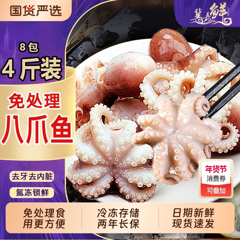 海鲜八爪鱼免处理冷冻章鱼爆头八带鱼水产品年夜饭火锅食材小章鱼