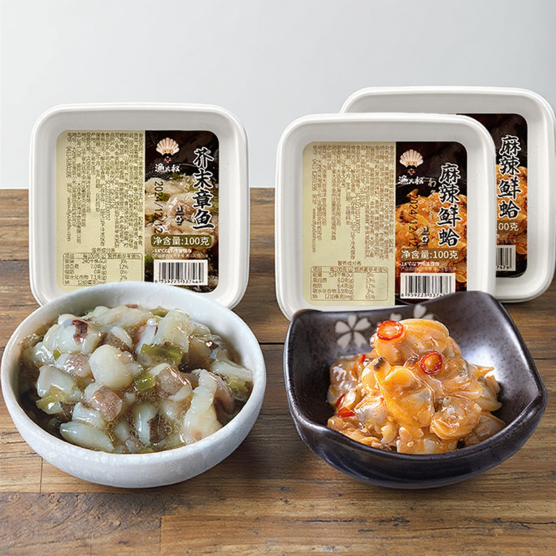 洋琪食品上海麻辣鲜蛤芥末章鱼500g花甲海鲜罐头日料店小菜海螺片