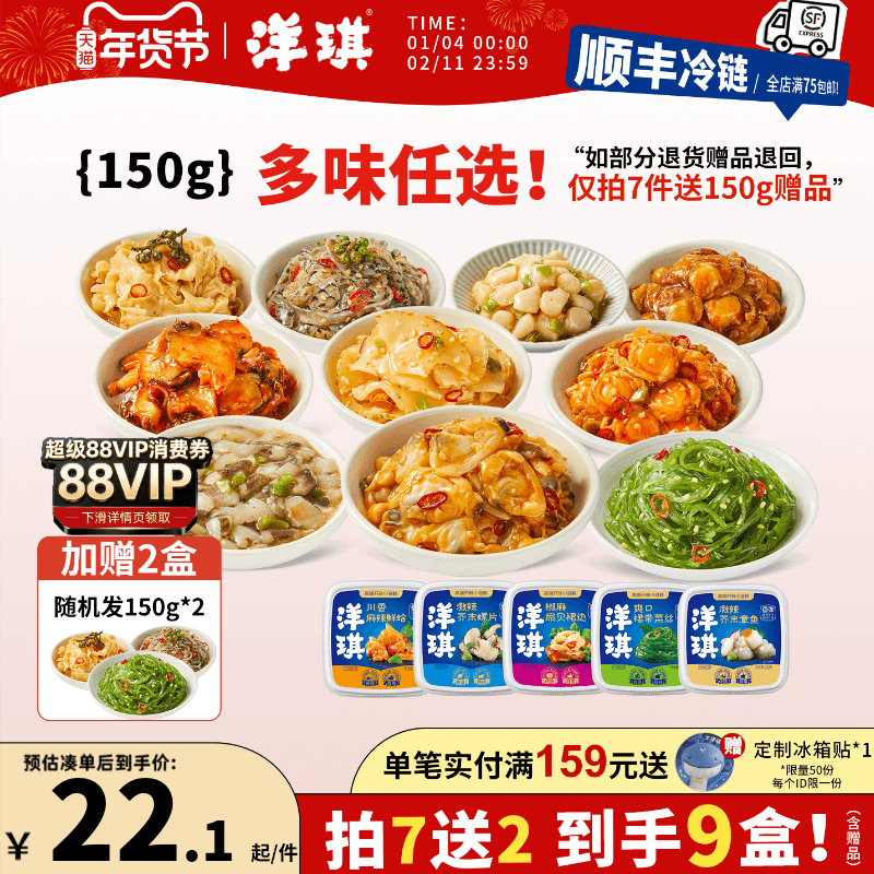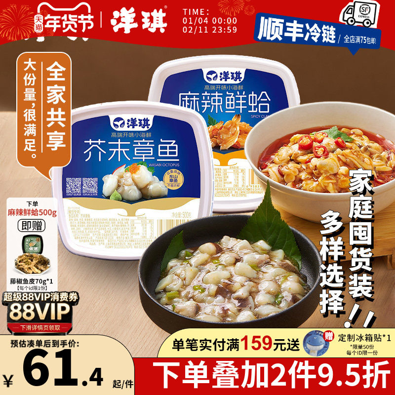 [199元到手9件]洋琪150g即食海鲜小菜麻辣鲜蛤芥末章鱼裙带菜蟹柳