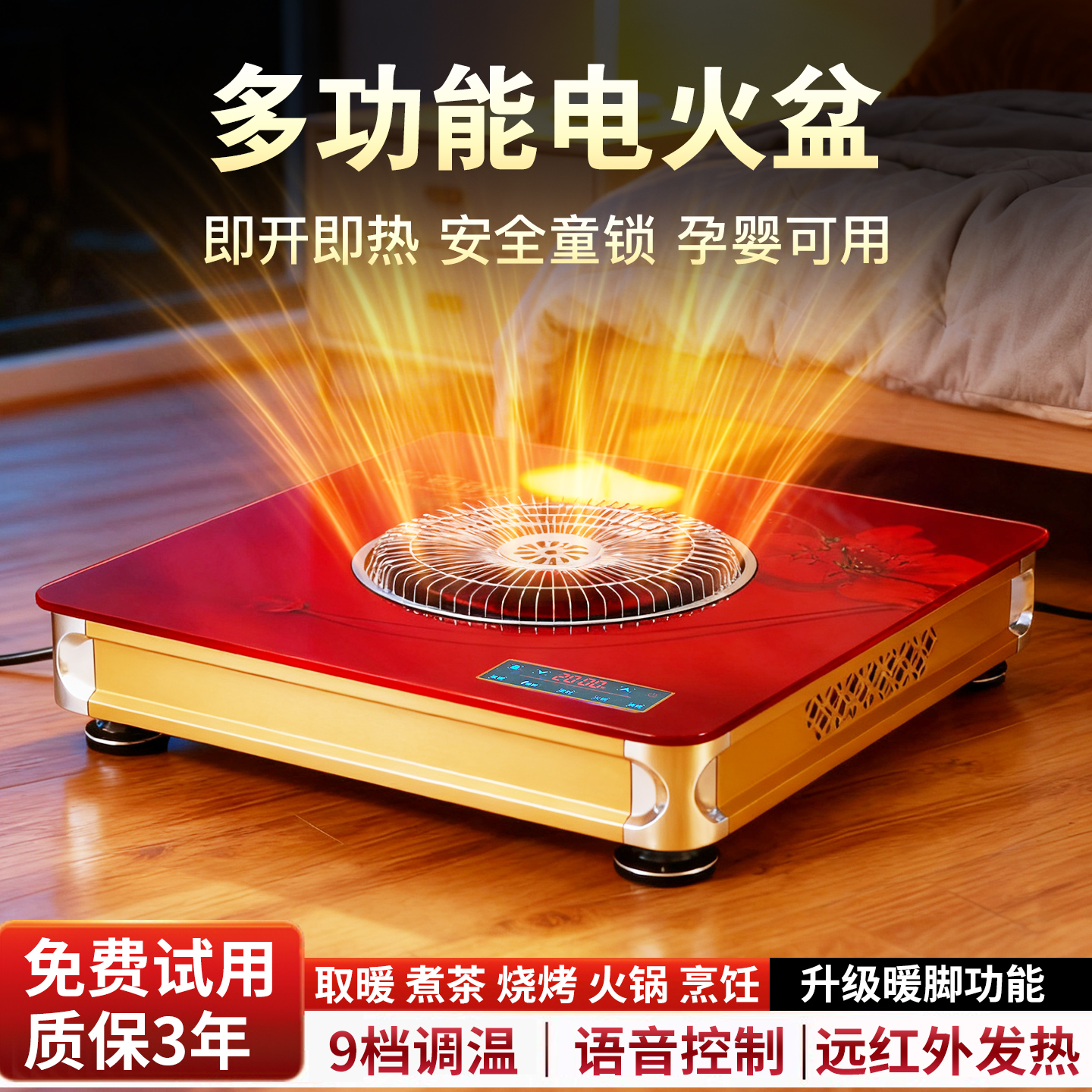 皓彩多功能电火盆2025新款取暖器家用节能桌下烤火炉冬季暖脚神器