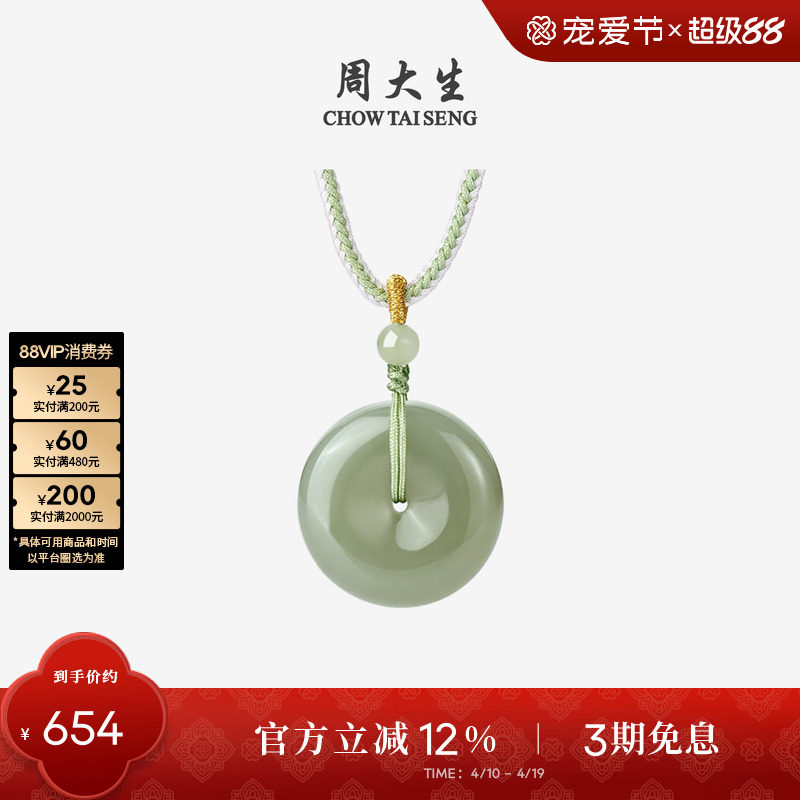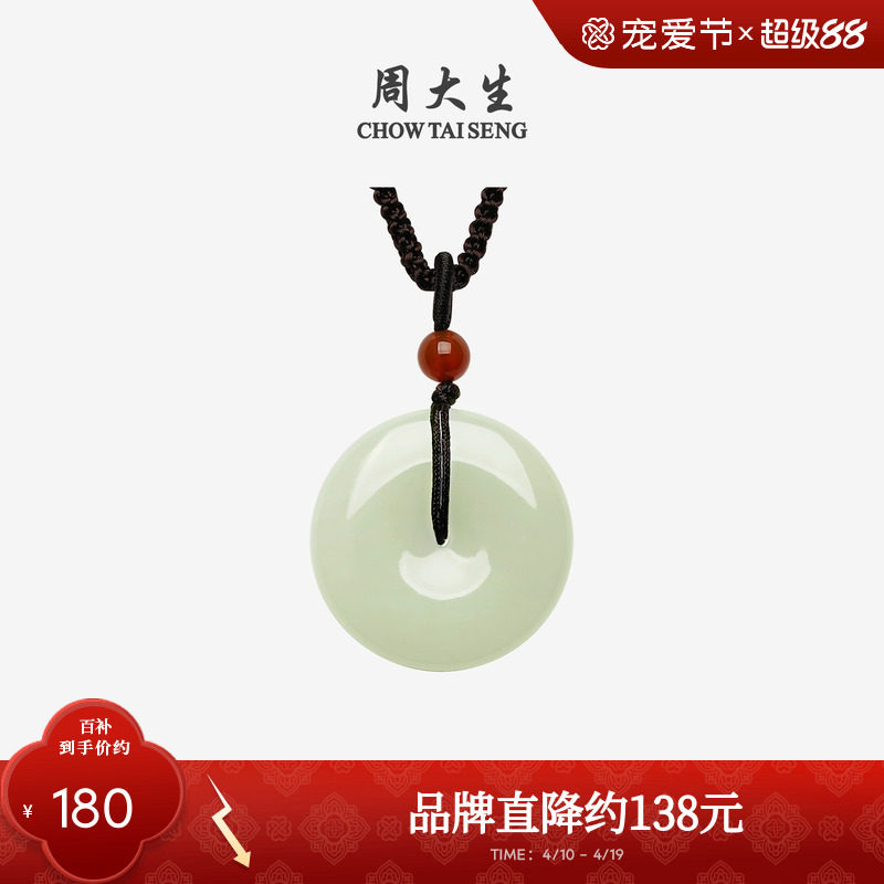 周大生和田玉平安扣吊坠玉石项链情侣款挂坠玉佩生日礼物送男朋友