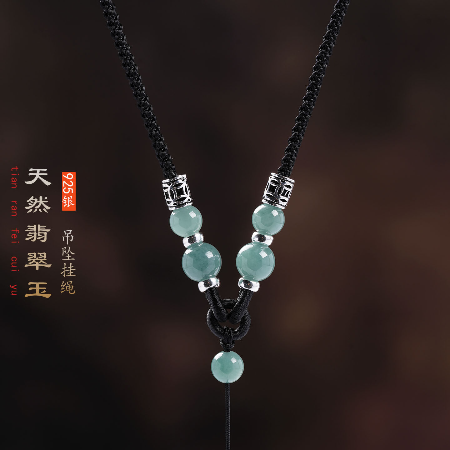 天然翡翠玉和田玉吊坠挂绳手工编织S925银男女调节款项链挂件绳子