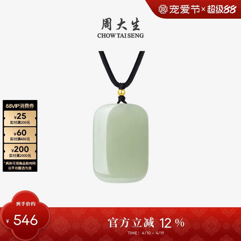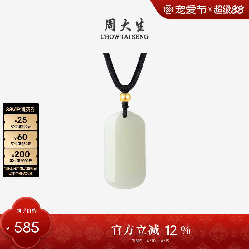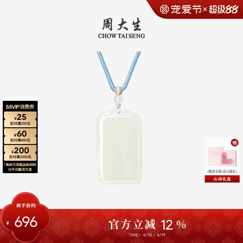 周大生黄金和田玉吊坠男女平安无事牌项链情侣挂坠生日礼物送女友