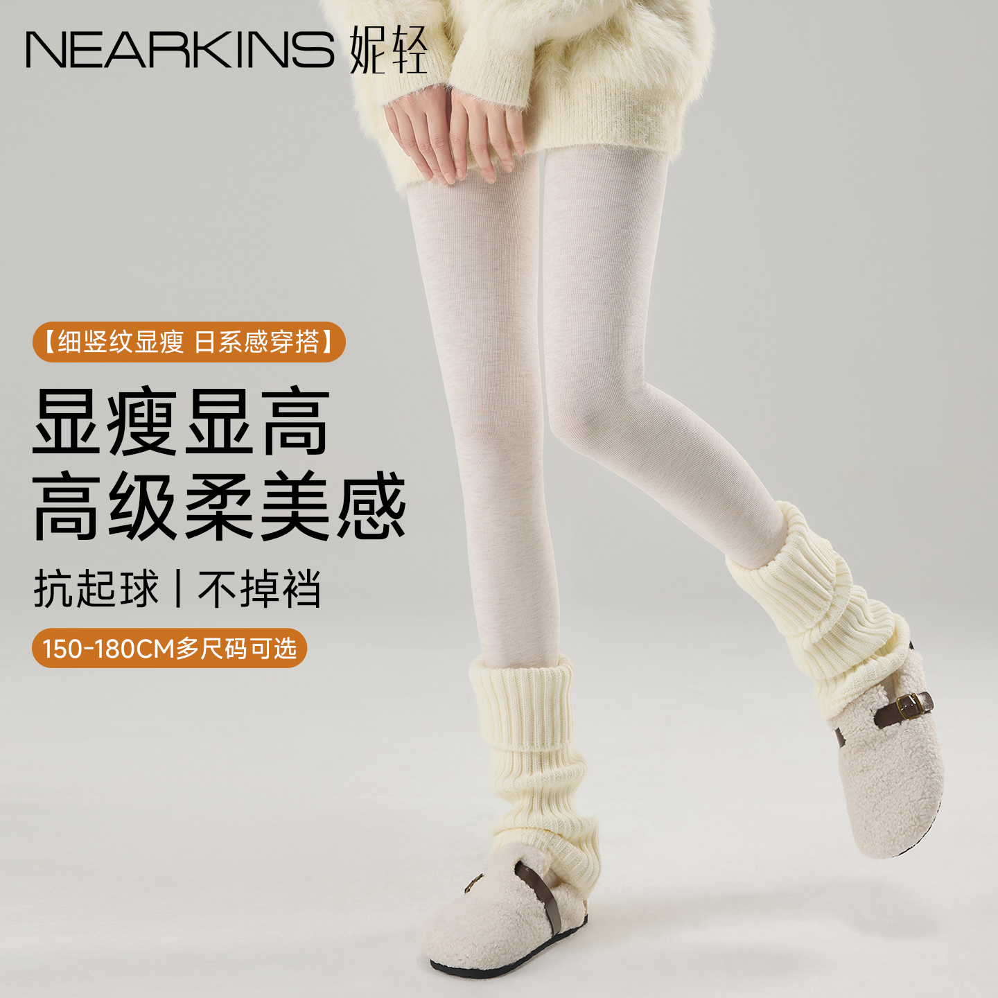 爱上女足角秋冬加绒白色连裤袜女外穿燕麦打底裤袜保暖显瘦米白色
