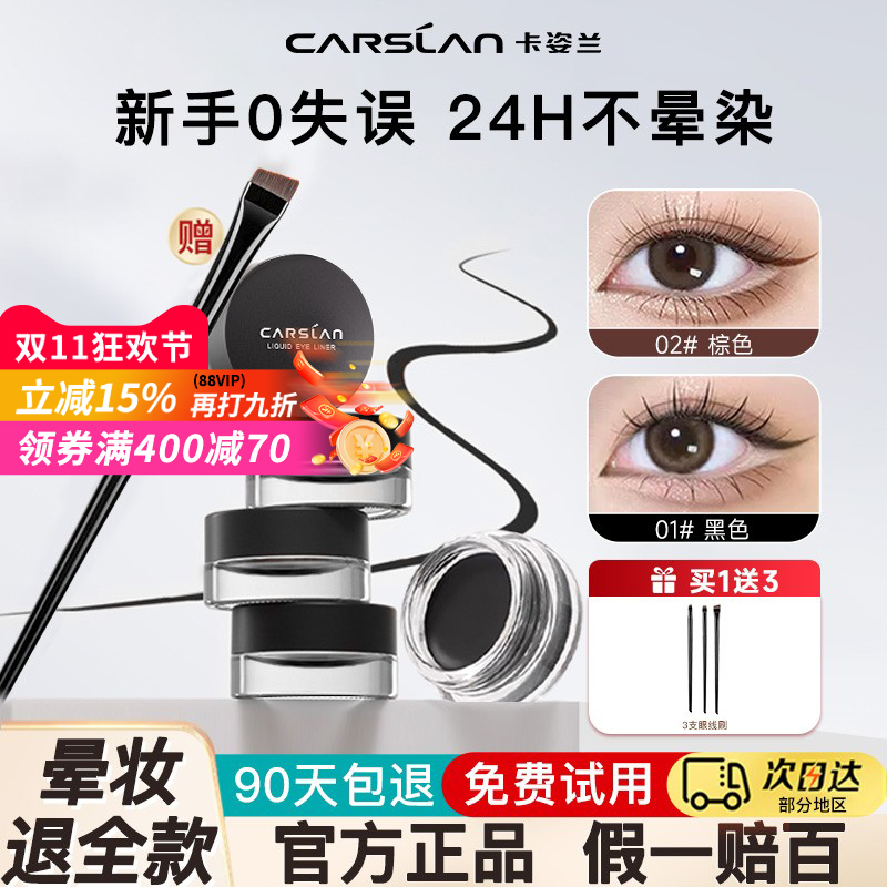 卡姿兰眼线膏防水防汗不晕染持久不脱色眼线笔新手初学者官方正品