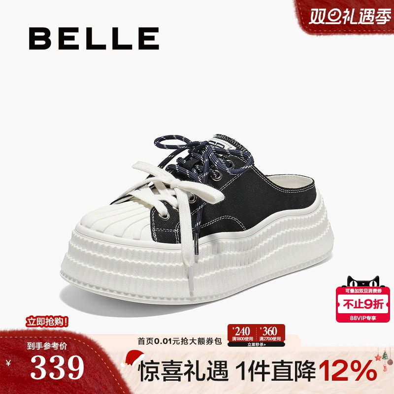 百丽厚底贝壳头透气小白鞋子女2025夏季新款半拖包头凉拖B2549BH5
