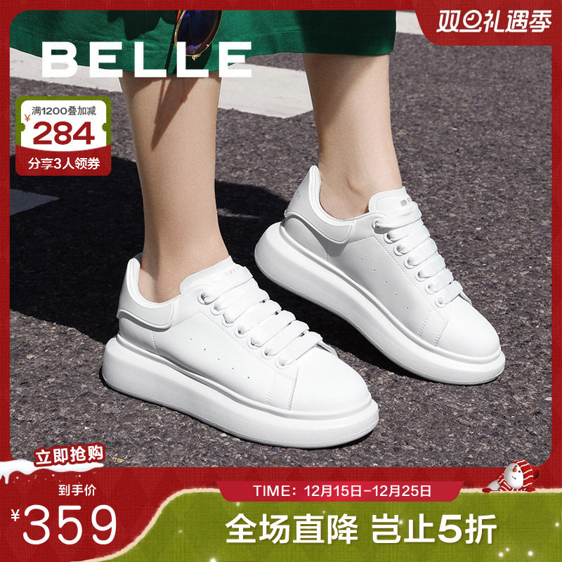 百丽厚底小白鞋子女百搭板鞋简约新款休闲鞋运动小白鞋W7V1DAM3