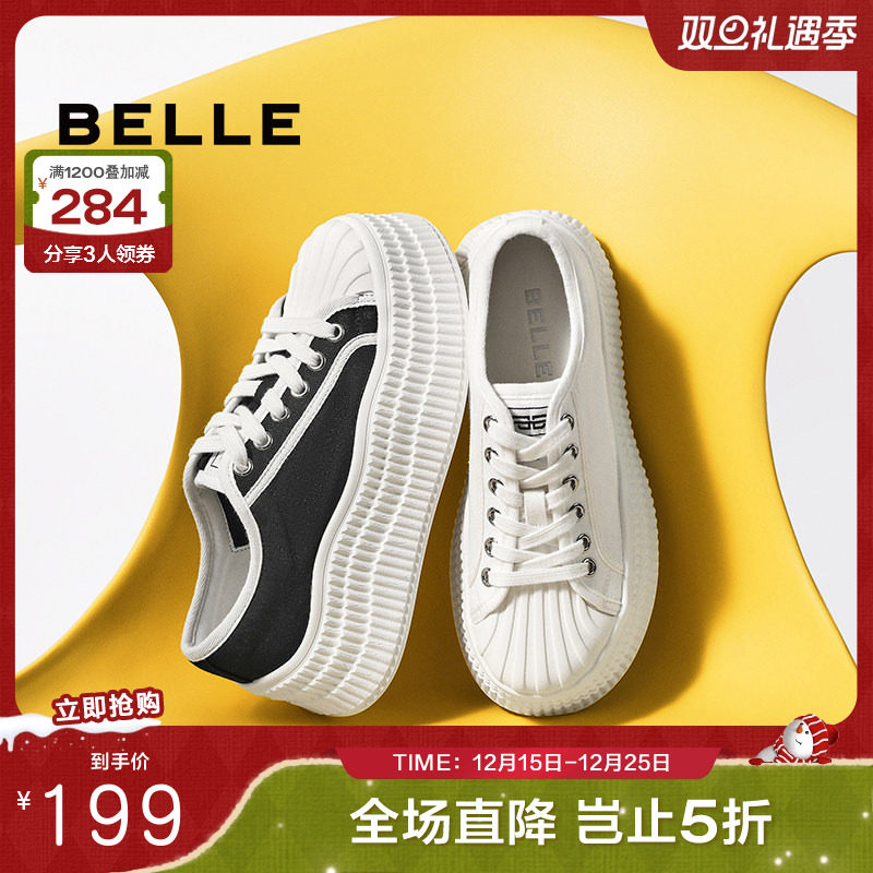 百丽厚底小白鞋子女2025新百搭板鞋简约拼色休闲鞋运动W7V1DAM3