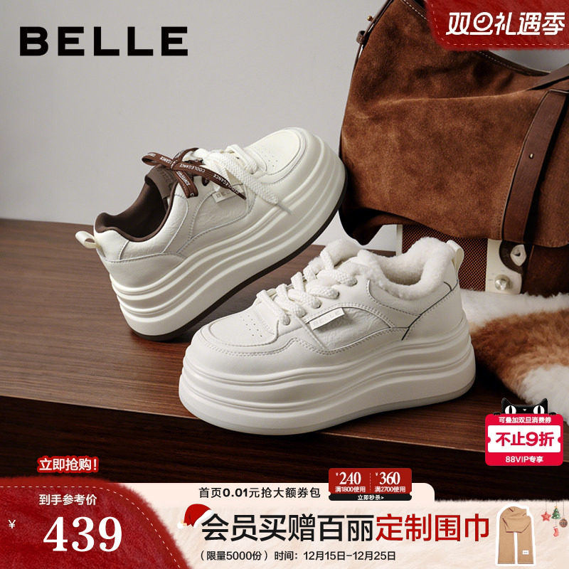 百丽加绒保暖百搭小白鞋子女春新厚底增高舒适休闲板鞋B3012AM6预